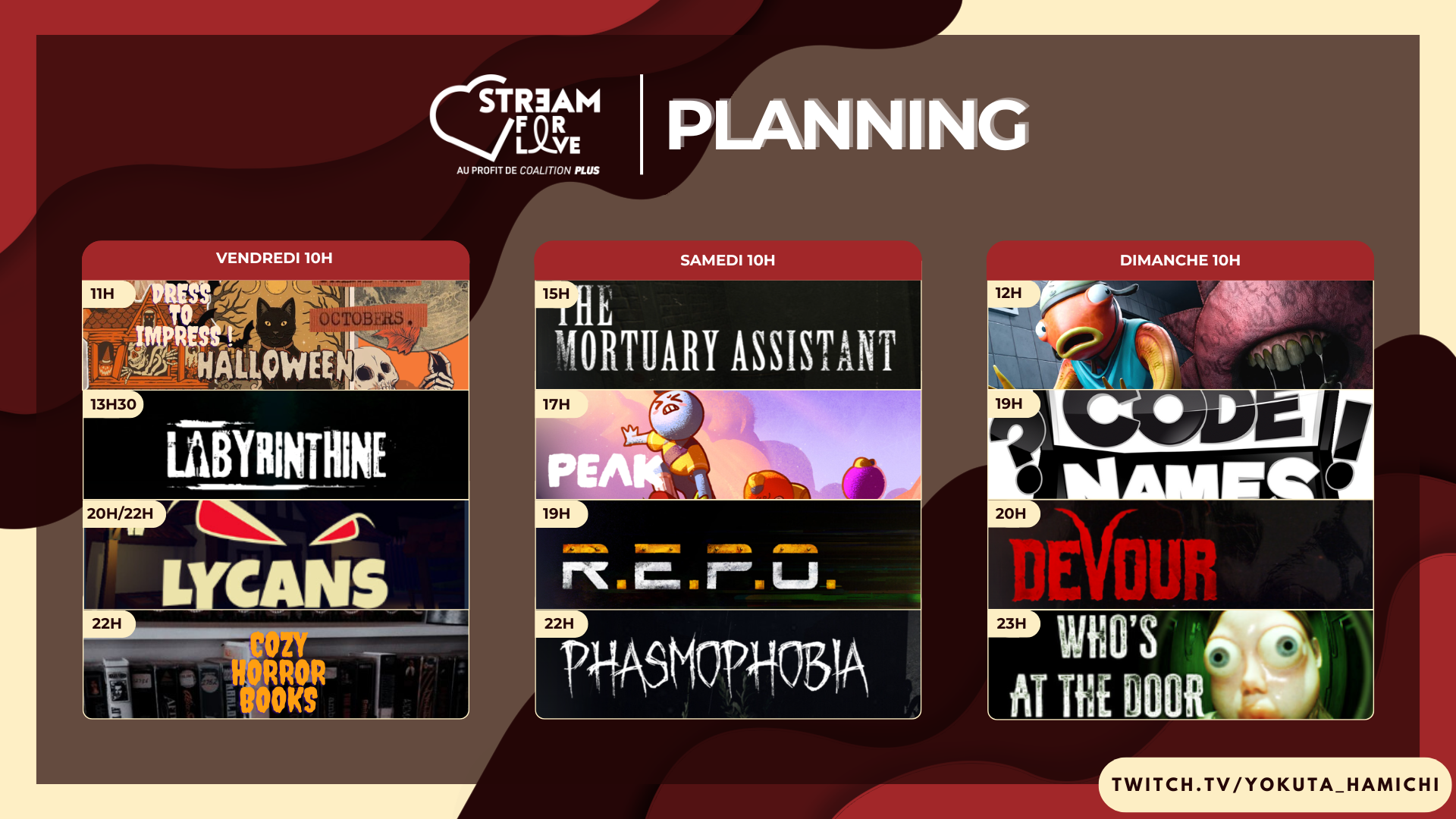 Planning des activités de streaming de Dizlexik_hamichi.